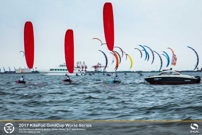 Yet all 26 riders from 14 nations who have travelled to Weifang for the first of two back-to-back KiteFoil GoldCup stops in China made it to the start line on the Yellow Sea’s smooth waters.
